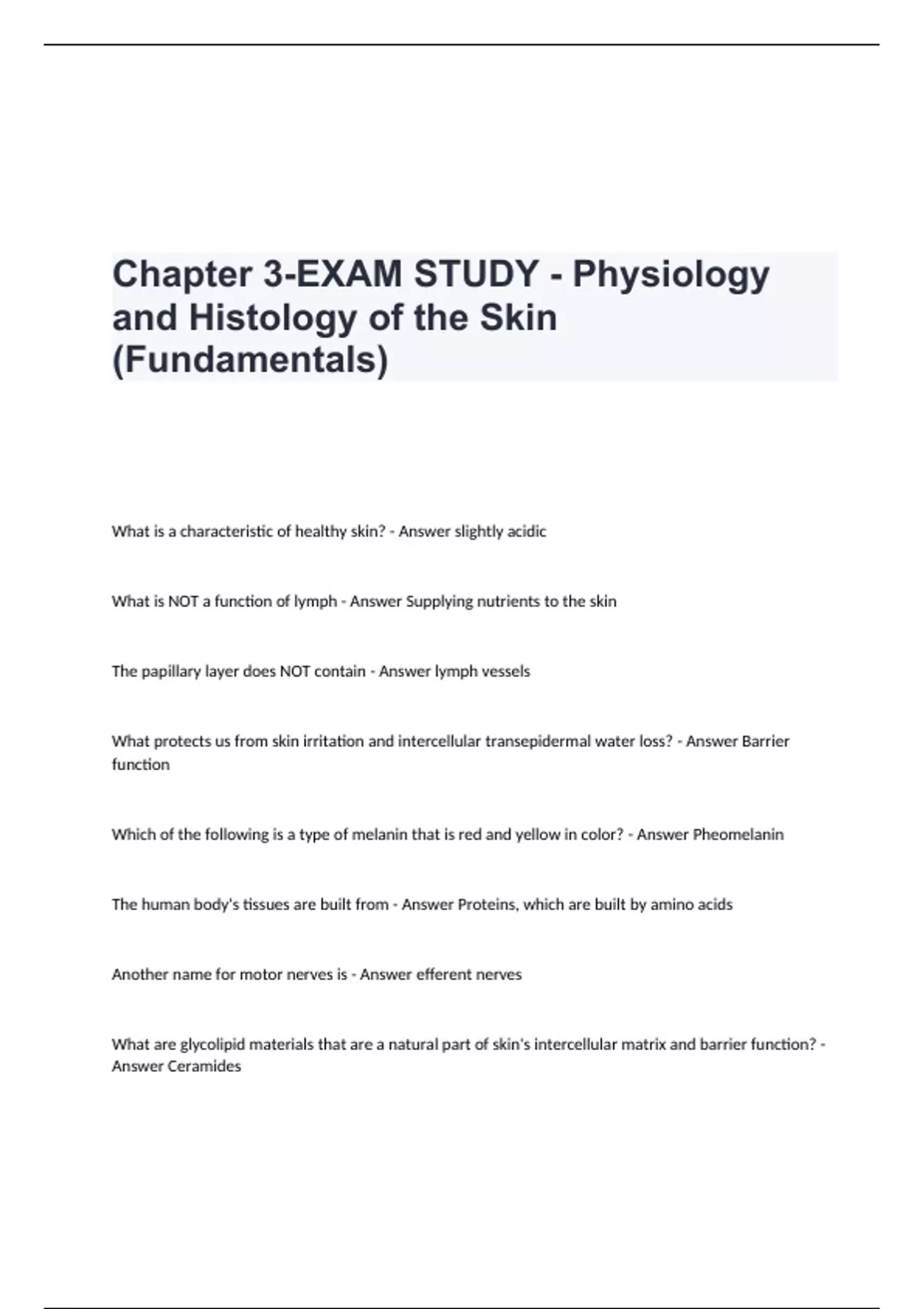 Chapter 3-EXAM STUDY - Physiology and Histology of the Skin (Fundamentals)