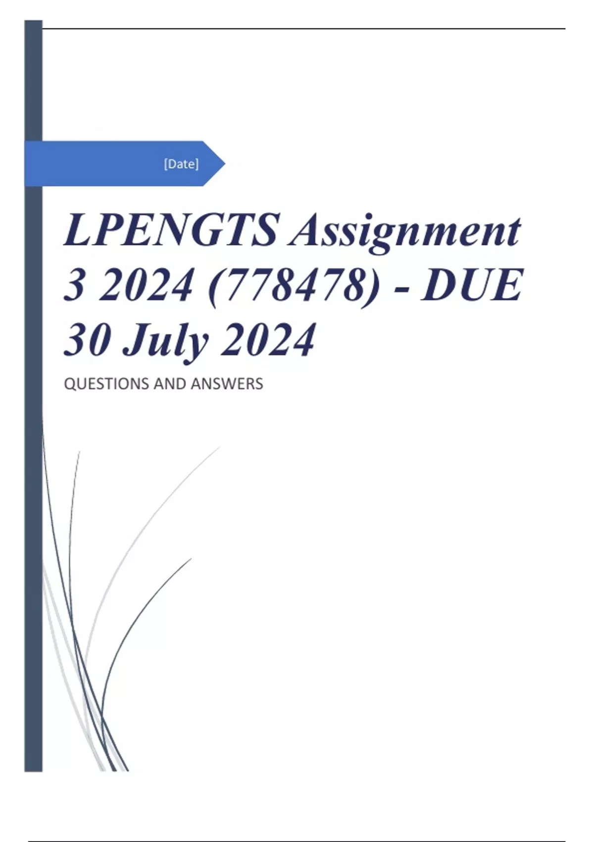 LPENGTS Assignment 3 2024 (778478) - DUE 30 July 2024 QUESTIONS AND ANSWERS