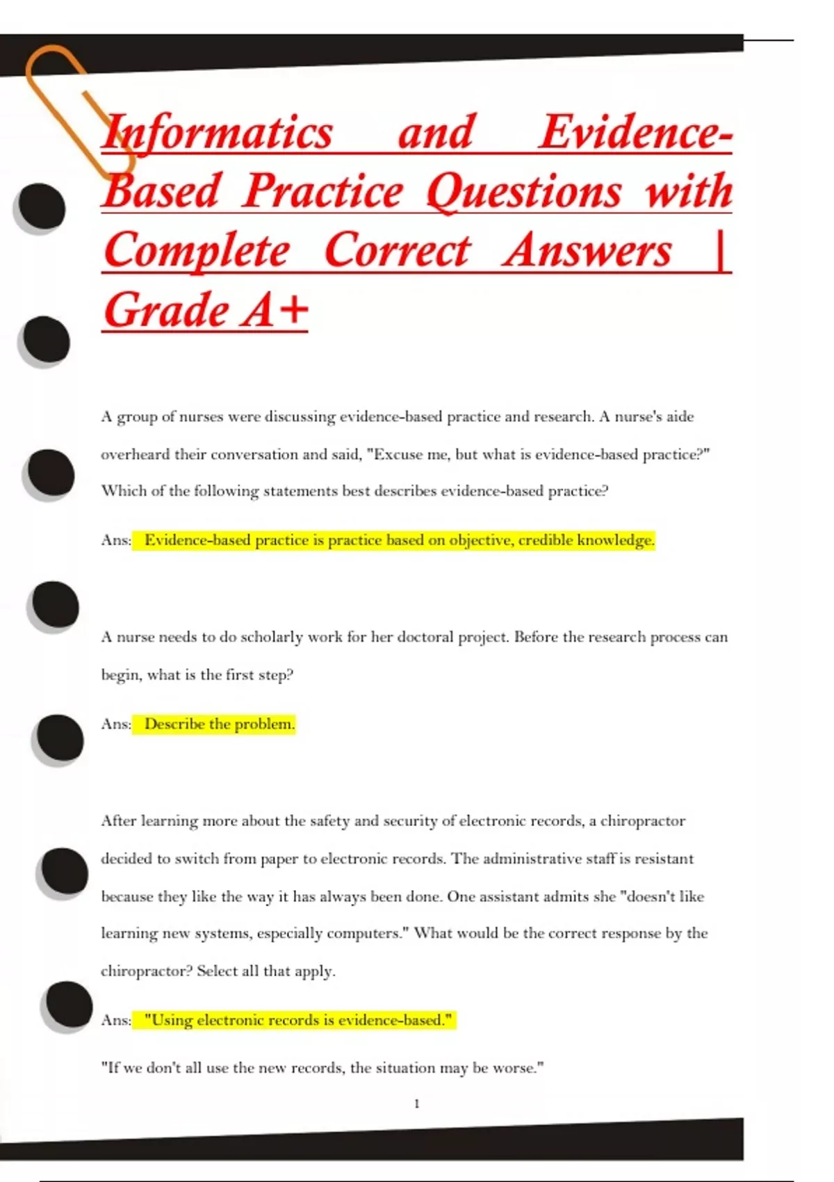 Informatics and EvidenceBased Practice Questions with Complete Correct Answers | Grade A+