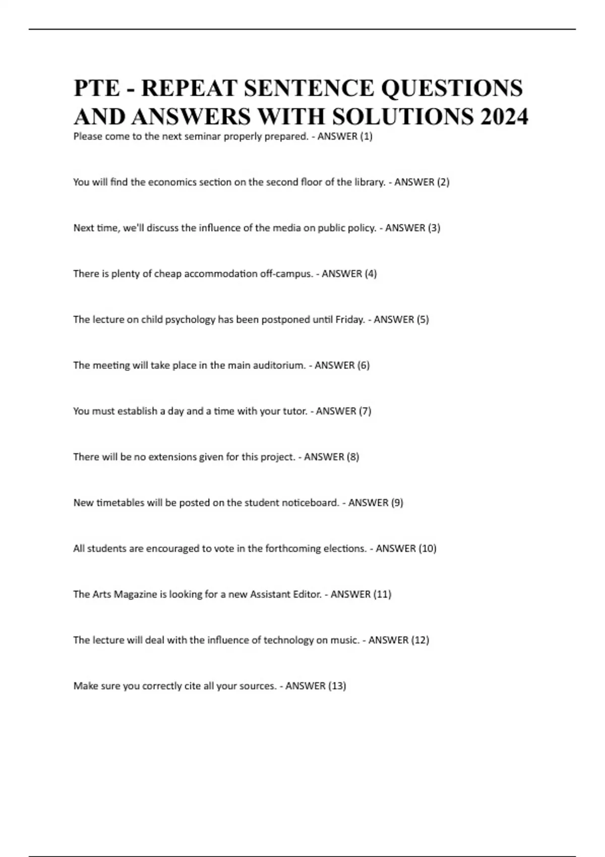 PTE - REPEAT SENTENCE QUESTIONS AND ANSWERS WITH SOLUTIONS 2024