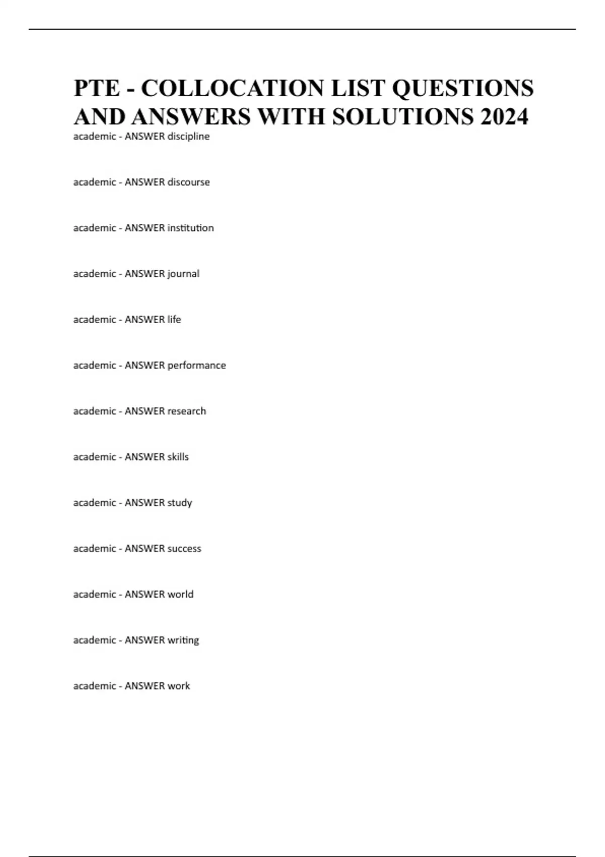 PTE - COLLOCATION LIST QUESTIONS AND ANSWERS WITH SOLUTIONS 2024