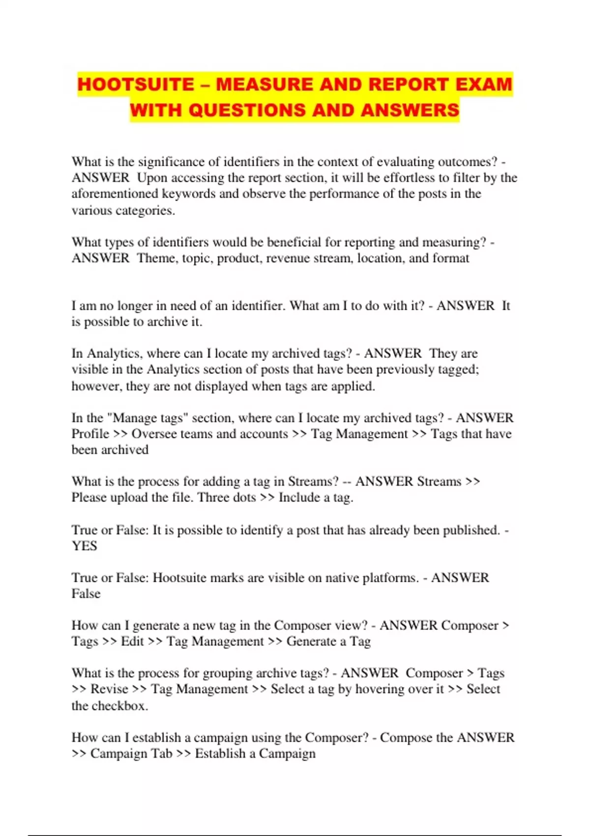HOOTSUITE – MEASURE AND REPORT EXAM WITH QUESTIONS AND ANSWERS...