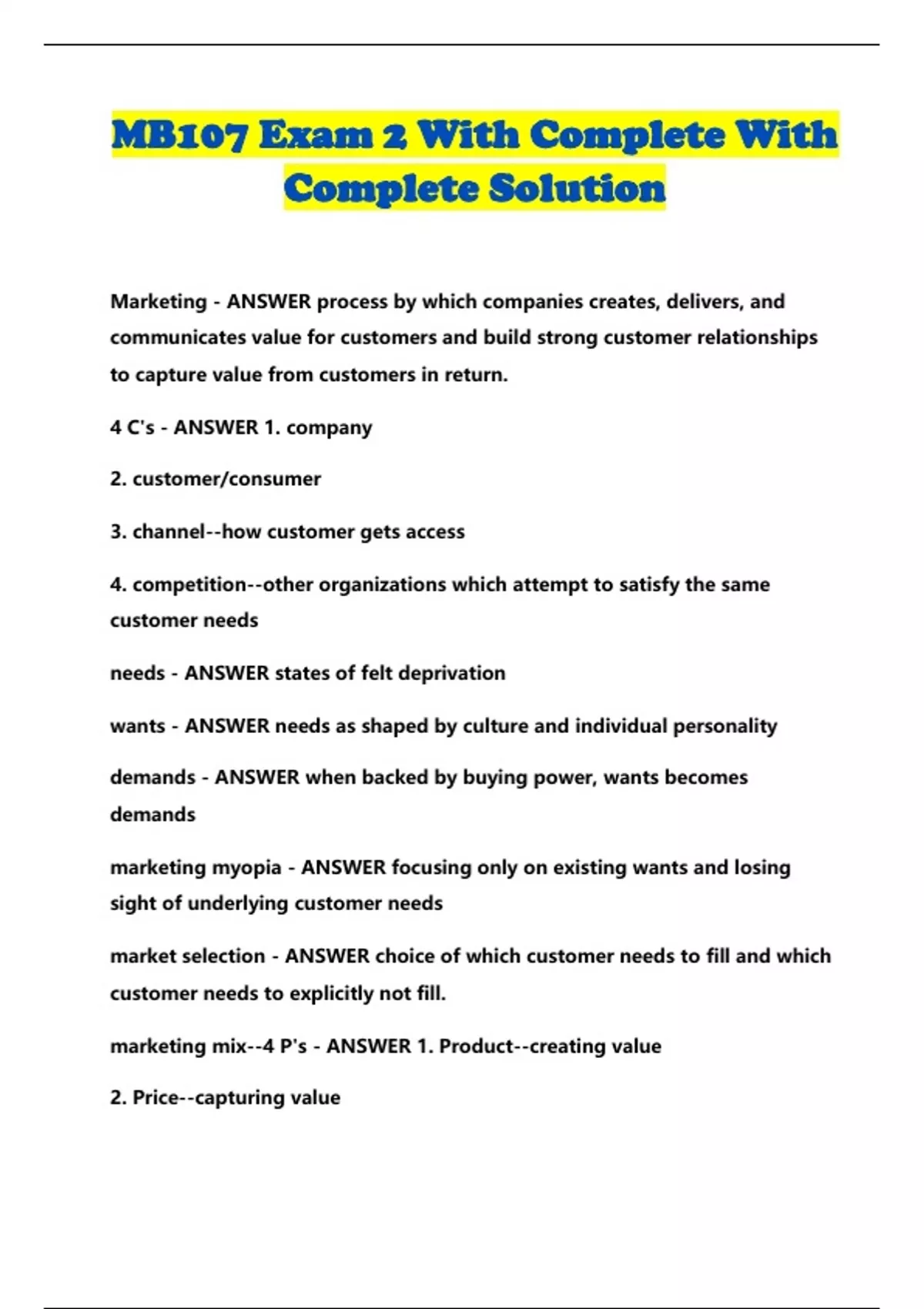 MB107 BUNDLED EXAMS WITH SOLUTION