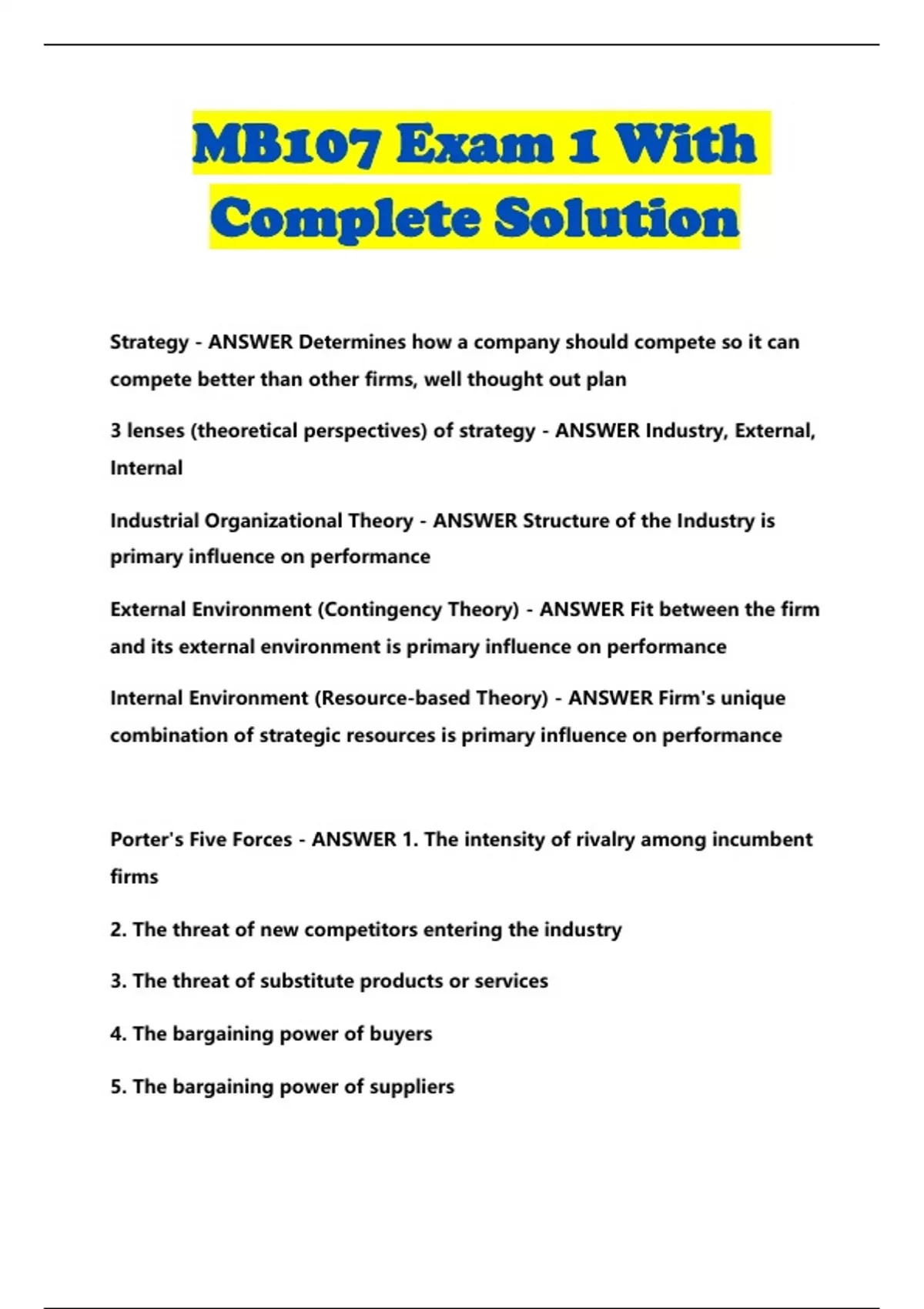 MB107 BUNDLED EXAMS WITH SOLUTION