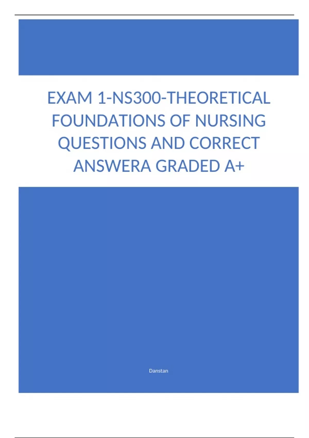 Exam 1-Ns300-Theoretical Foundations of Nursing Questions and Correct Answers Graded A+