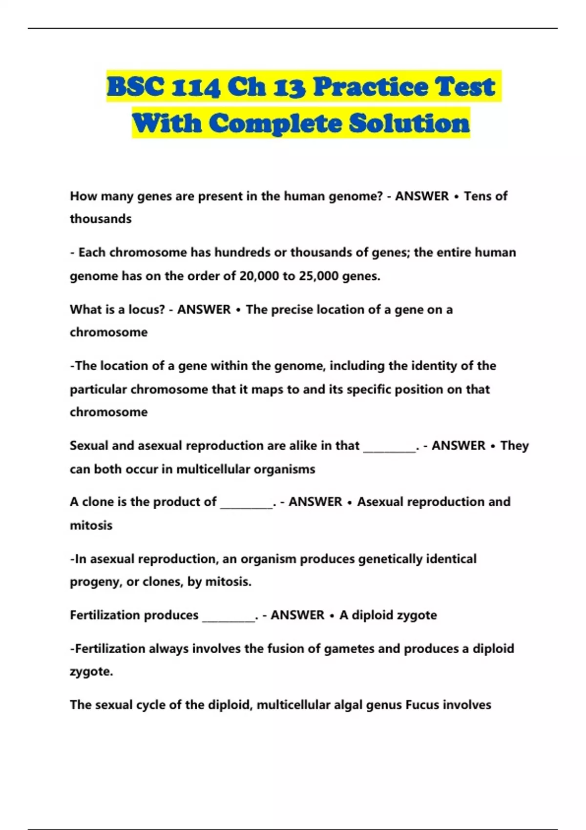 BSC 114 Ch 13 Practice Test With Complete Solution...