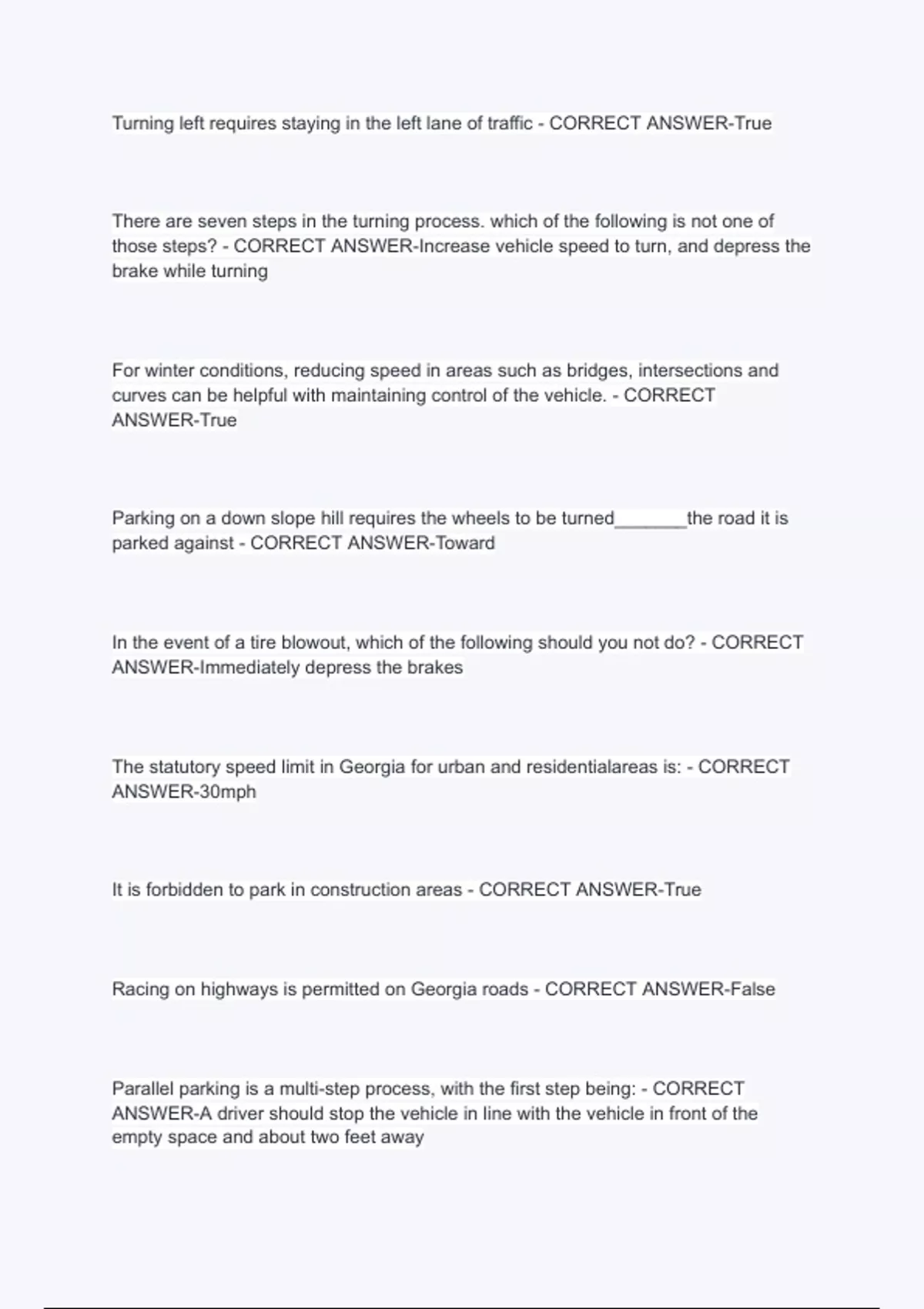 Georgia Drivers Ed Unit 1 Lesson 3 Traffic Control Questions With Answers 2024 / 2025 Latest Version Solution