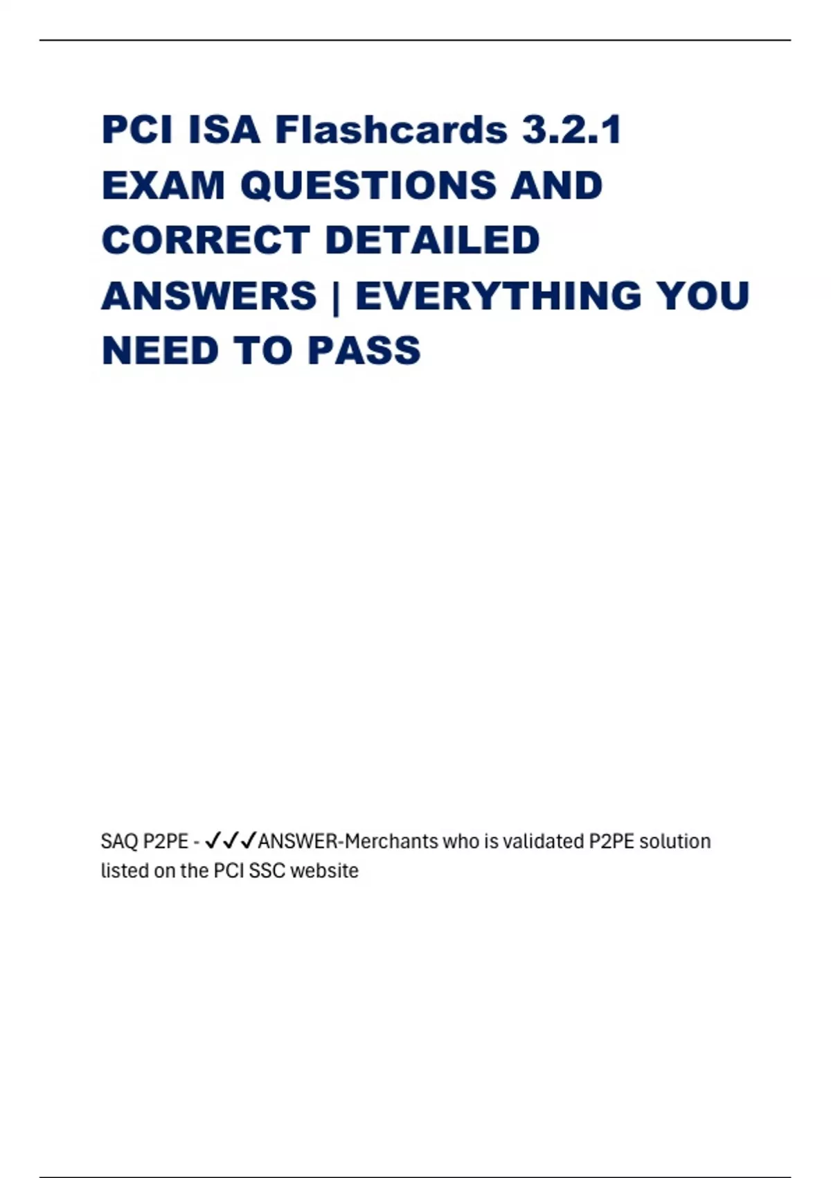PCI ISA Flashcards 3.2.1 EXAM QUESTIONS AND CORRECT DETAILED ANSWERS | EVERYTHING YOU NEED TO PASS SAQ P2PE - ANSWER-Merchants who is validated P2PE solution listed on the PCI SSC website