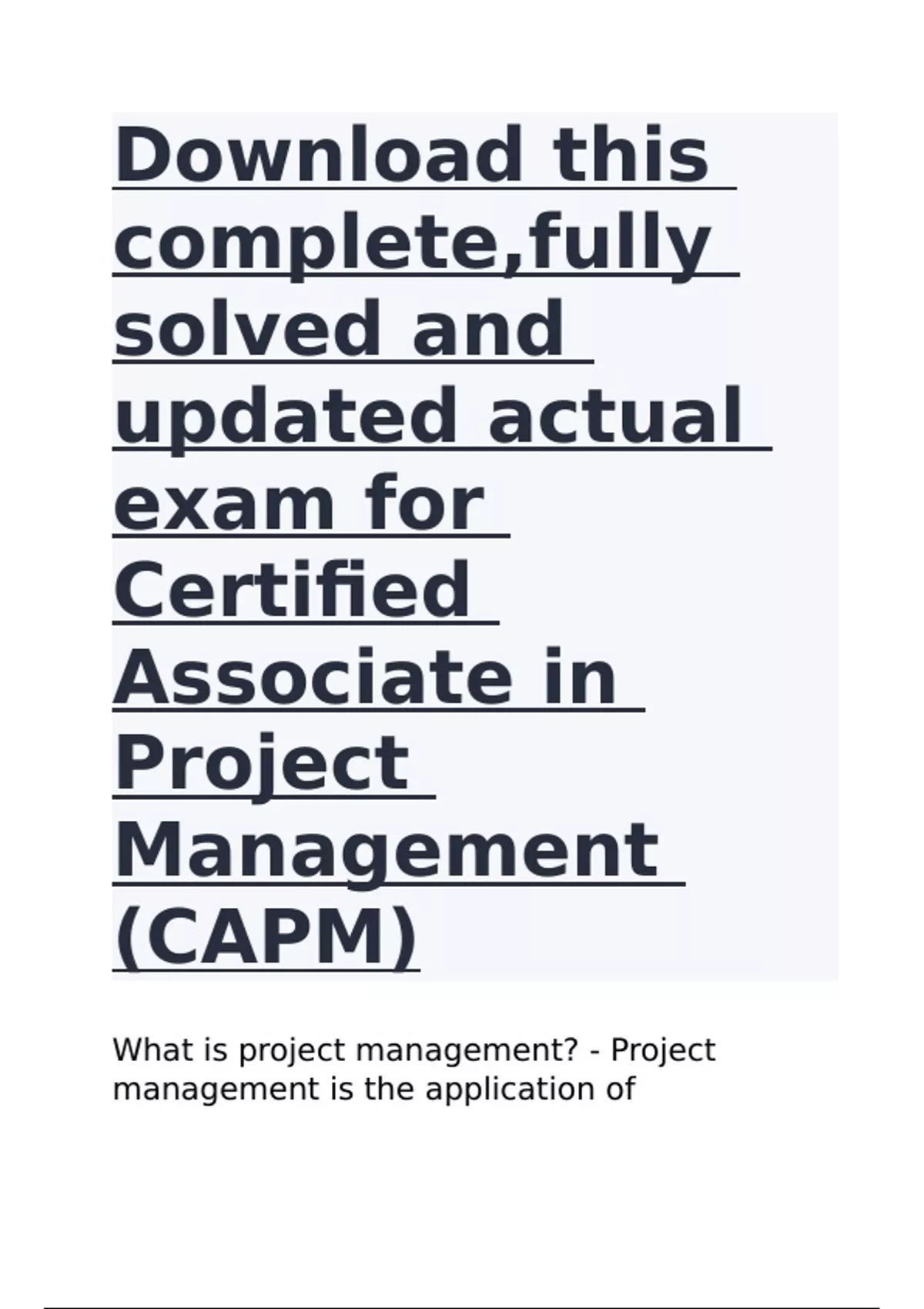 PMI CAPM Certification Exam Sample Questions and answers 2024