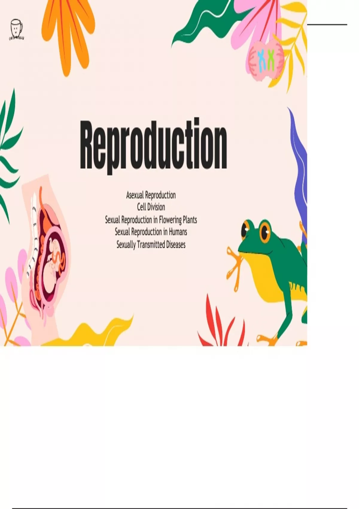 Reproduction Asexual Reproduction Cell Division Sexual Reproduction in Flowering Plants Sexual Reproduction in Humans Sexually Transmitted Diseases