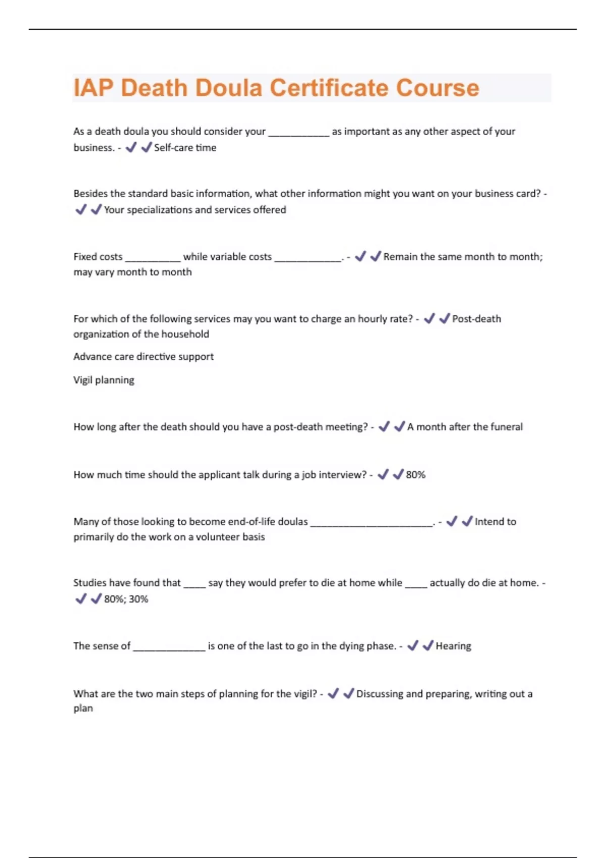 IAP Death Doula Certificate Course Questions & Answers Solved 100% Correct!!