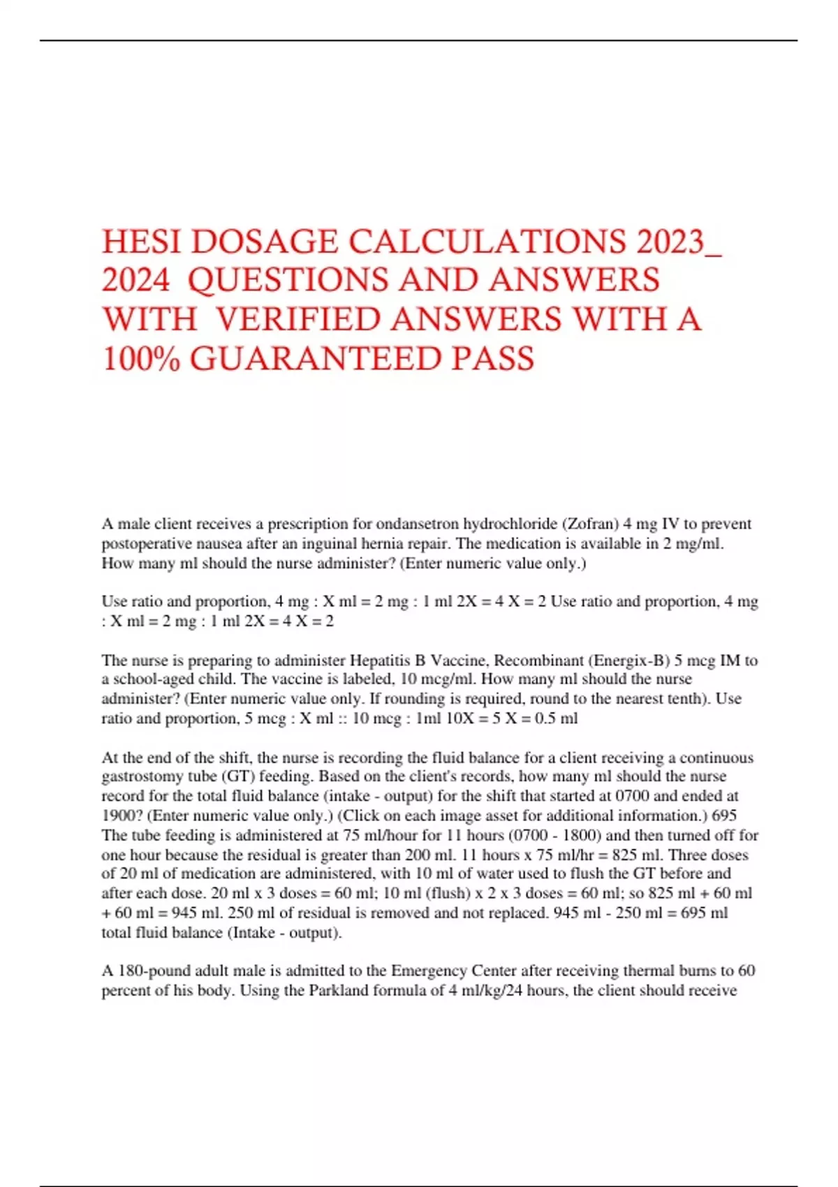 HESI DOSAGE CALCULATIONS 2023_ 2024 QUESTIONS AND ANSWERS WITH VERIFIED ANSWERS WITH A 100% GUARANTEED PASS