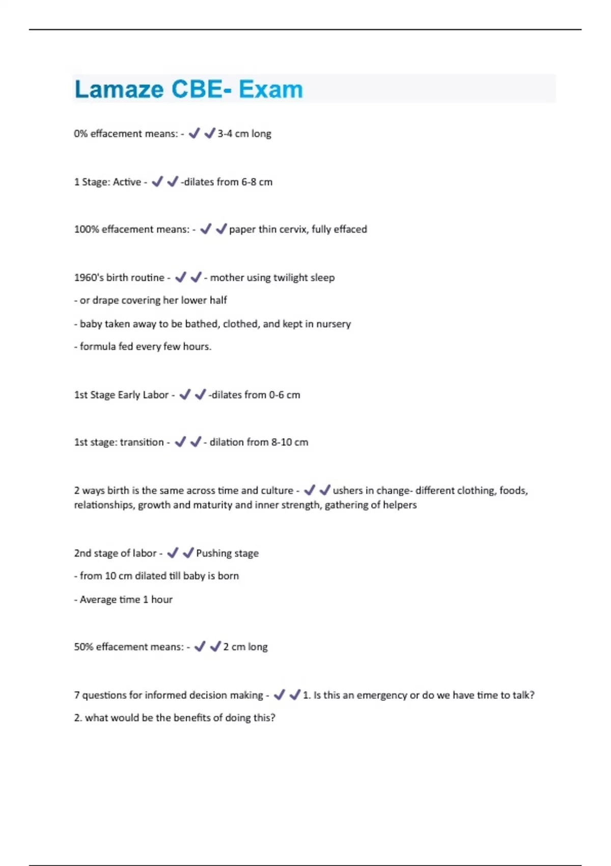 Lamaze CBE- Exam Questions & Answers Solved 100% Correct!!