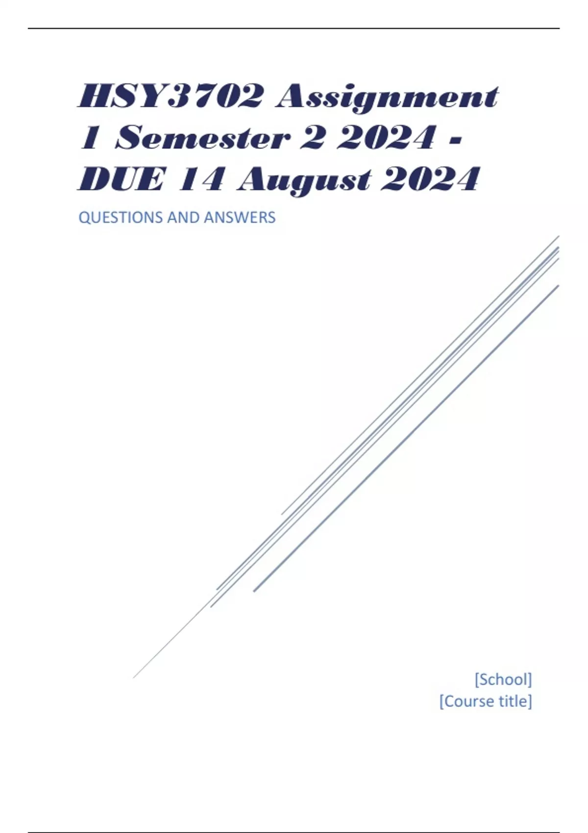 , HSY3702 Assignment 1 Semester 2 2024 - DUE 14 August 2024