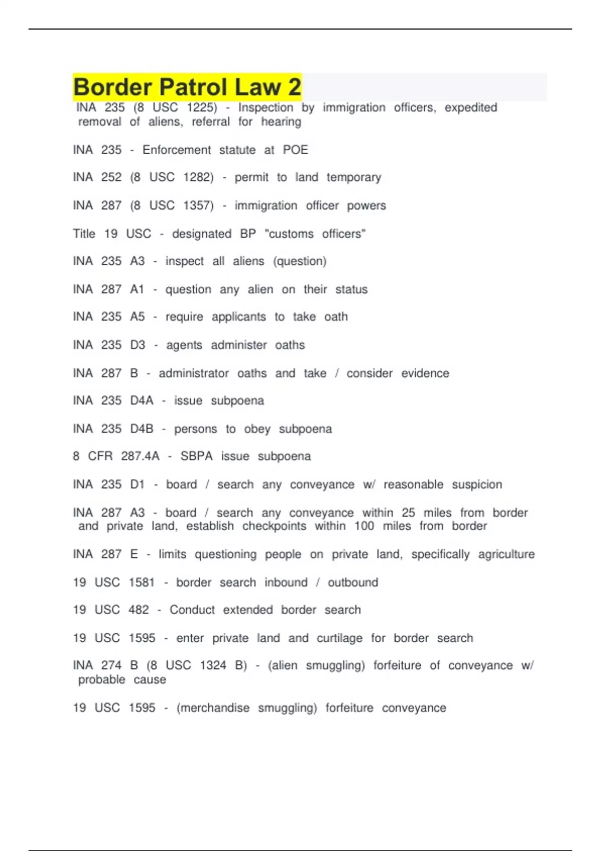 Exam of 7 pages for the course Border Patrol Law 2 at Border Patrol Law 2 (Border Patrol Law 2)