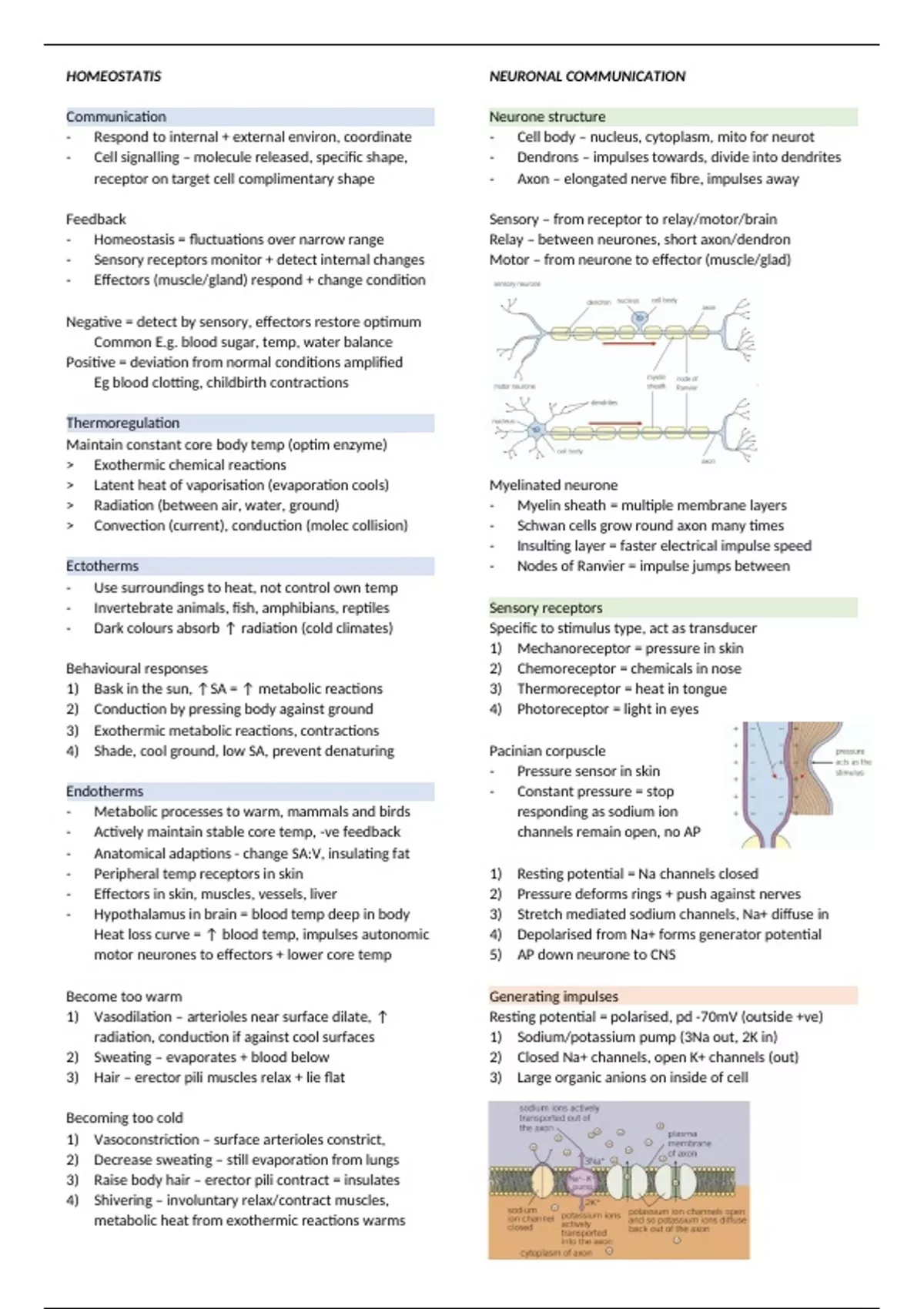 - Homeostasis = fluctuations over narrow range Relay – between neurones, short axon/dendron