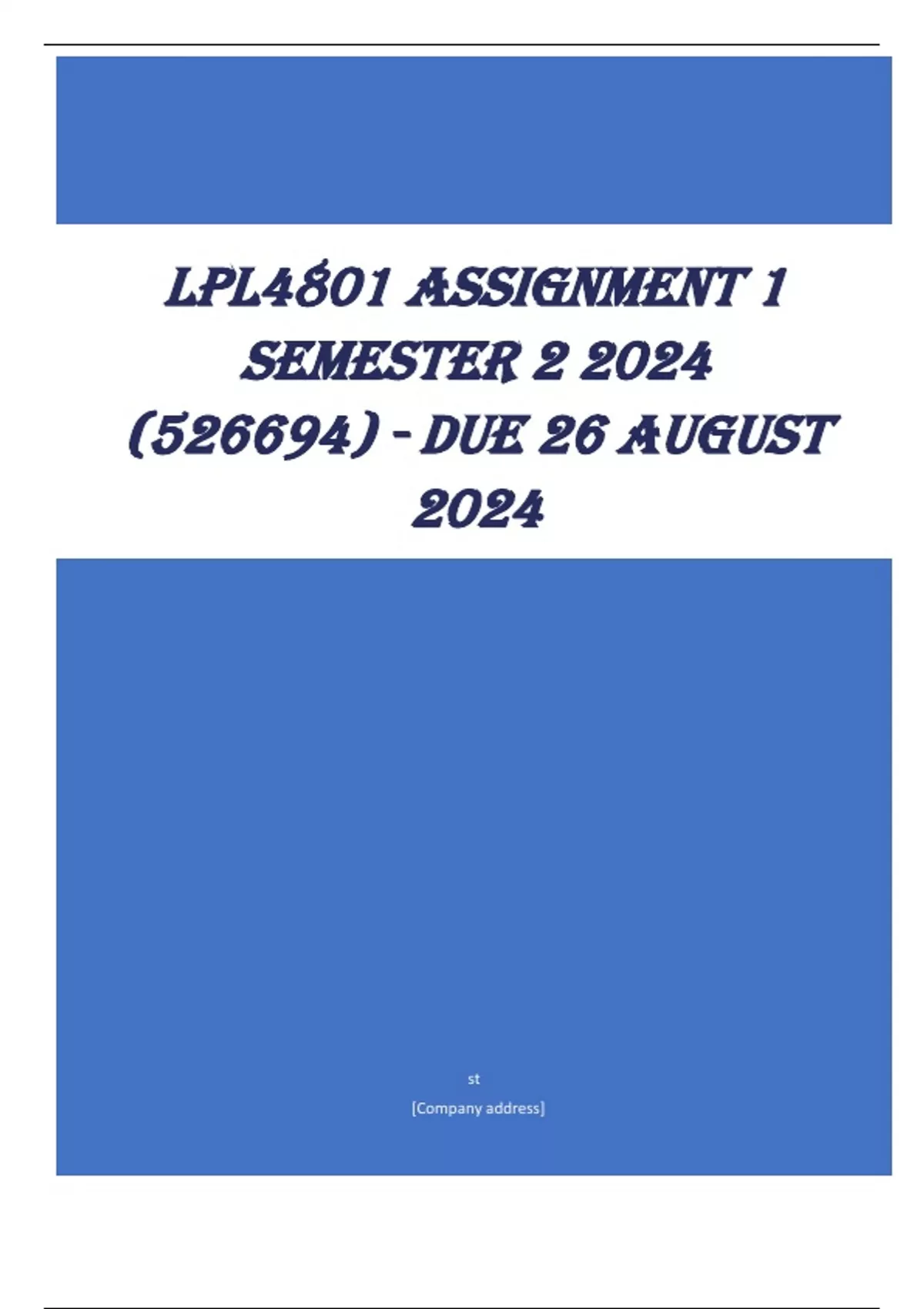 , LPL4801 Assignment 1 Semester 2 2024 (526694) - DUE 26 August 2024