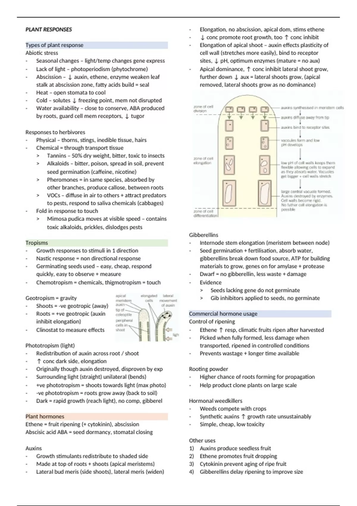 PLANT RESPONSES - Elongation, no abscission, apical dom, stims ethene