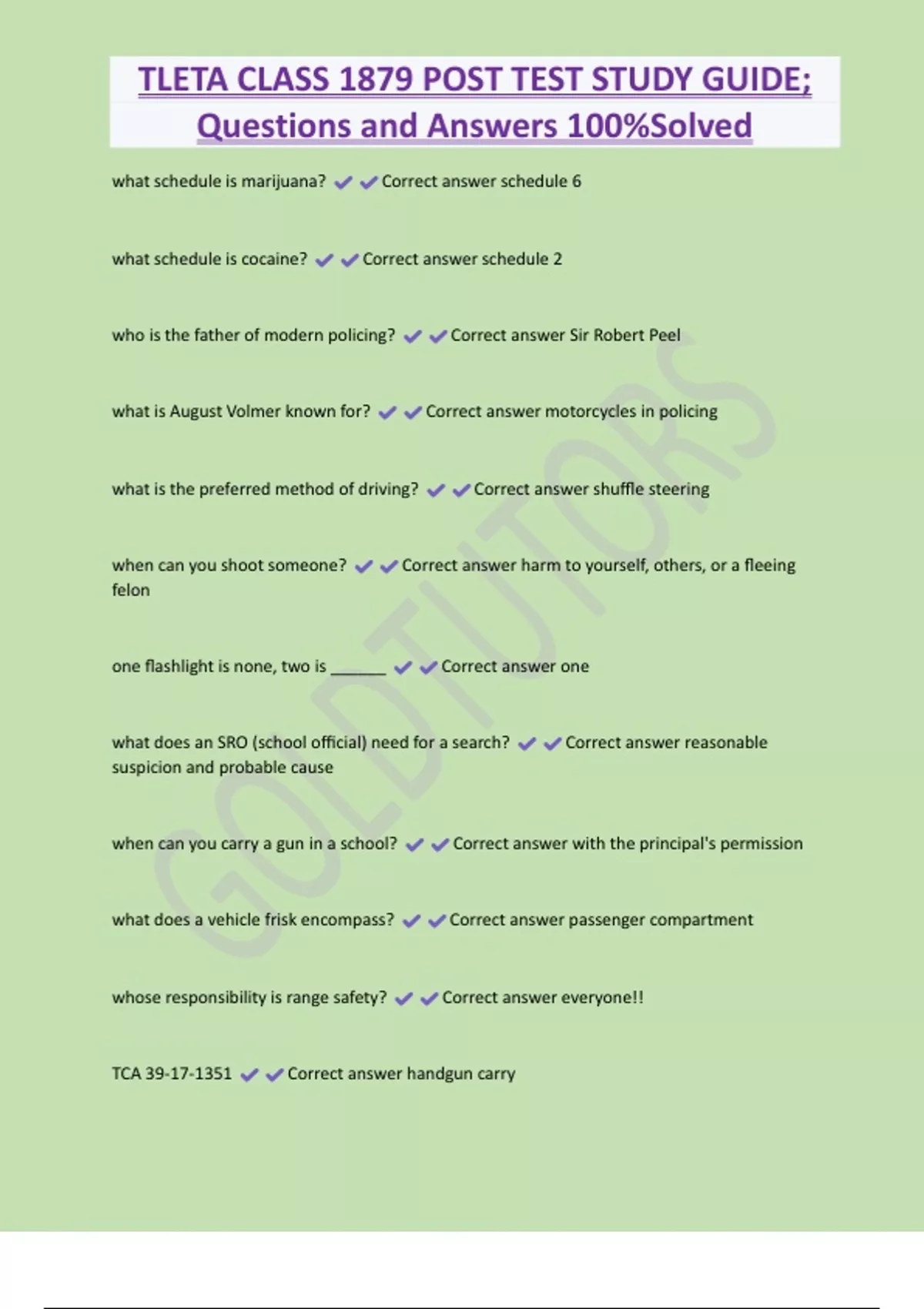 TLETA CLASS 1879 POST TEST STUDY GUIDE; Questions and Answers 100% Solved