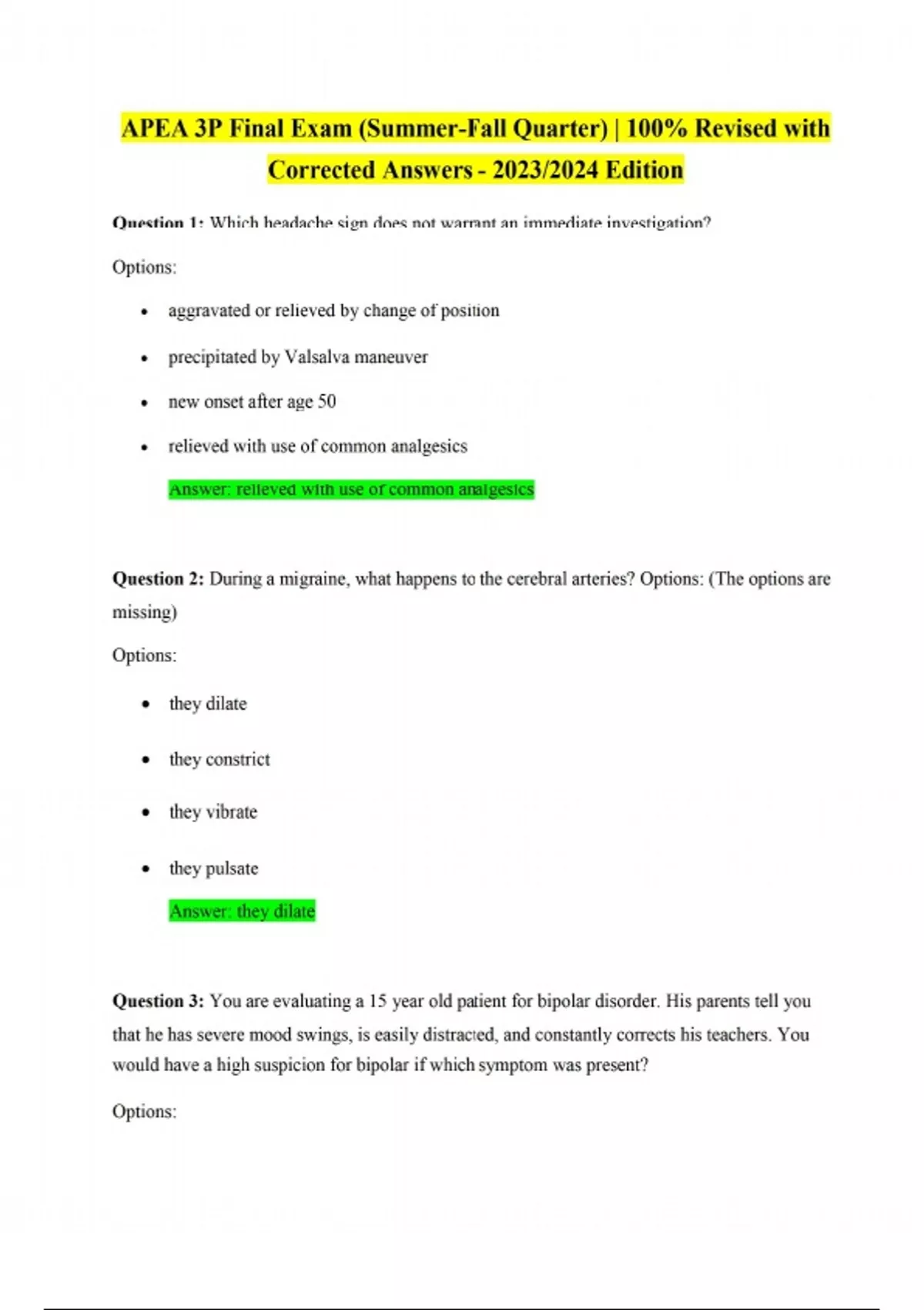 APEA 3P Final Exam (Summer-Fall Quarter) | 100% Revised with Corrected Answers - 2023/2024 Edition| FREE