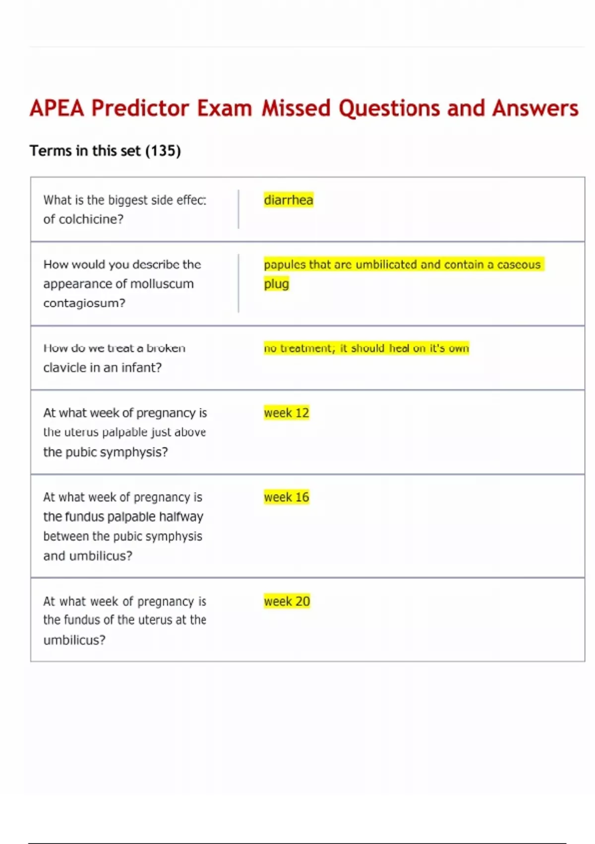 APEA Predictor Exam Missed Questions and Answers Free