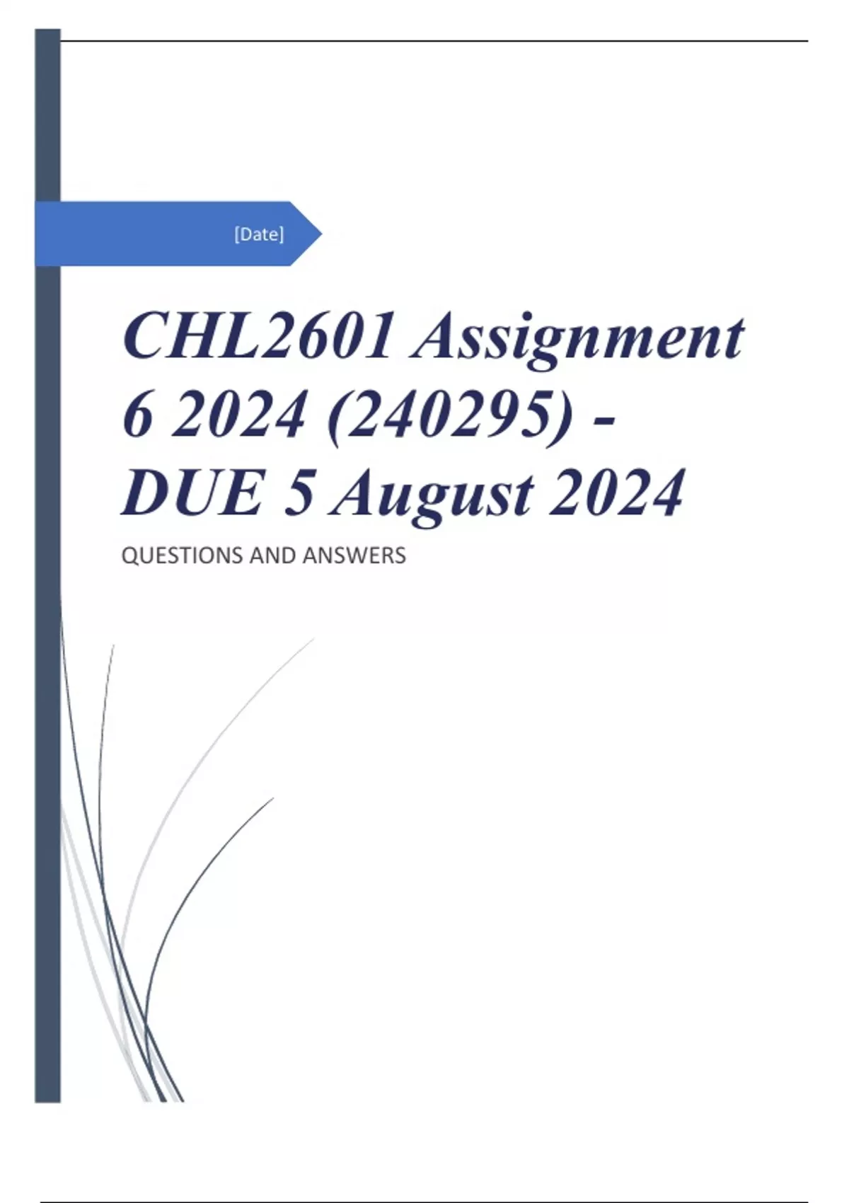 CHL2601 Assignment 6 2024 (240295) - DUE 5 August 2024 QUESTIONS WITH DETAILED ANSWERS