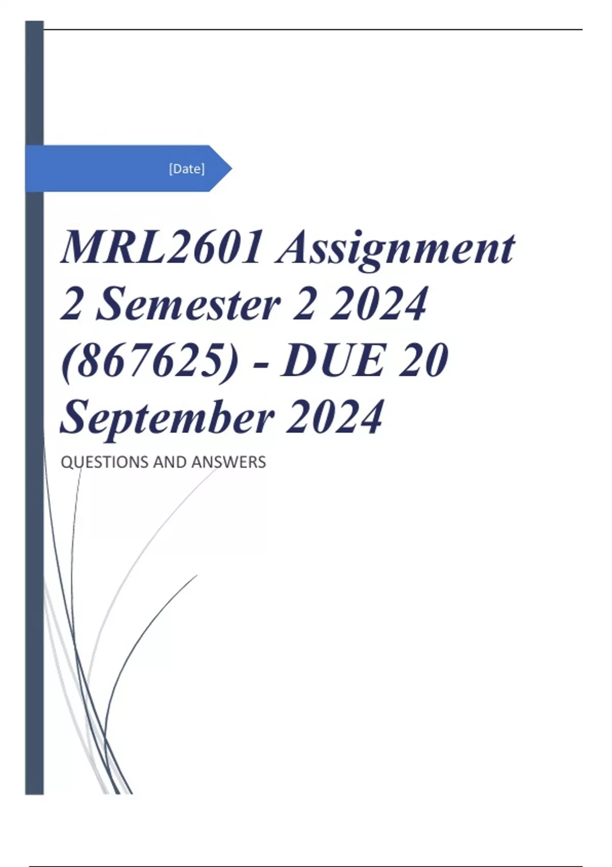 MRL2601 Assignment 2 Semester 2 2024 (867625) - DUE 20 September 2024 QUESTIONS WITH COMPLETE ANSWERS