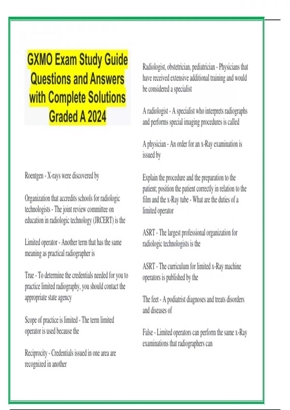 GXMO Exam Study Guide Questions and Answers with Complete Solutions Graded A 2024