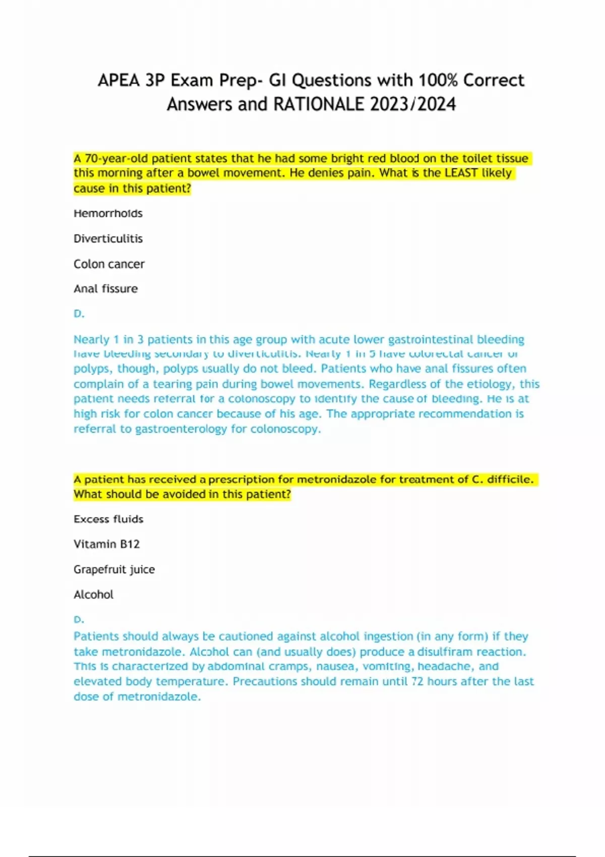 this morning after a bowel movement. He denies pain. What is the LEAST likely