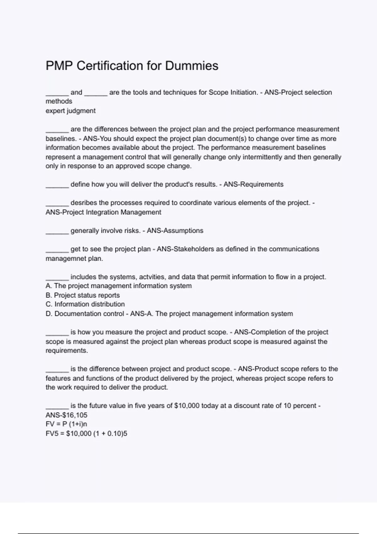 PMP Certification for Dummies Exam elaborations questions and answers!