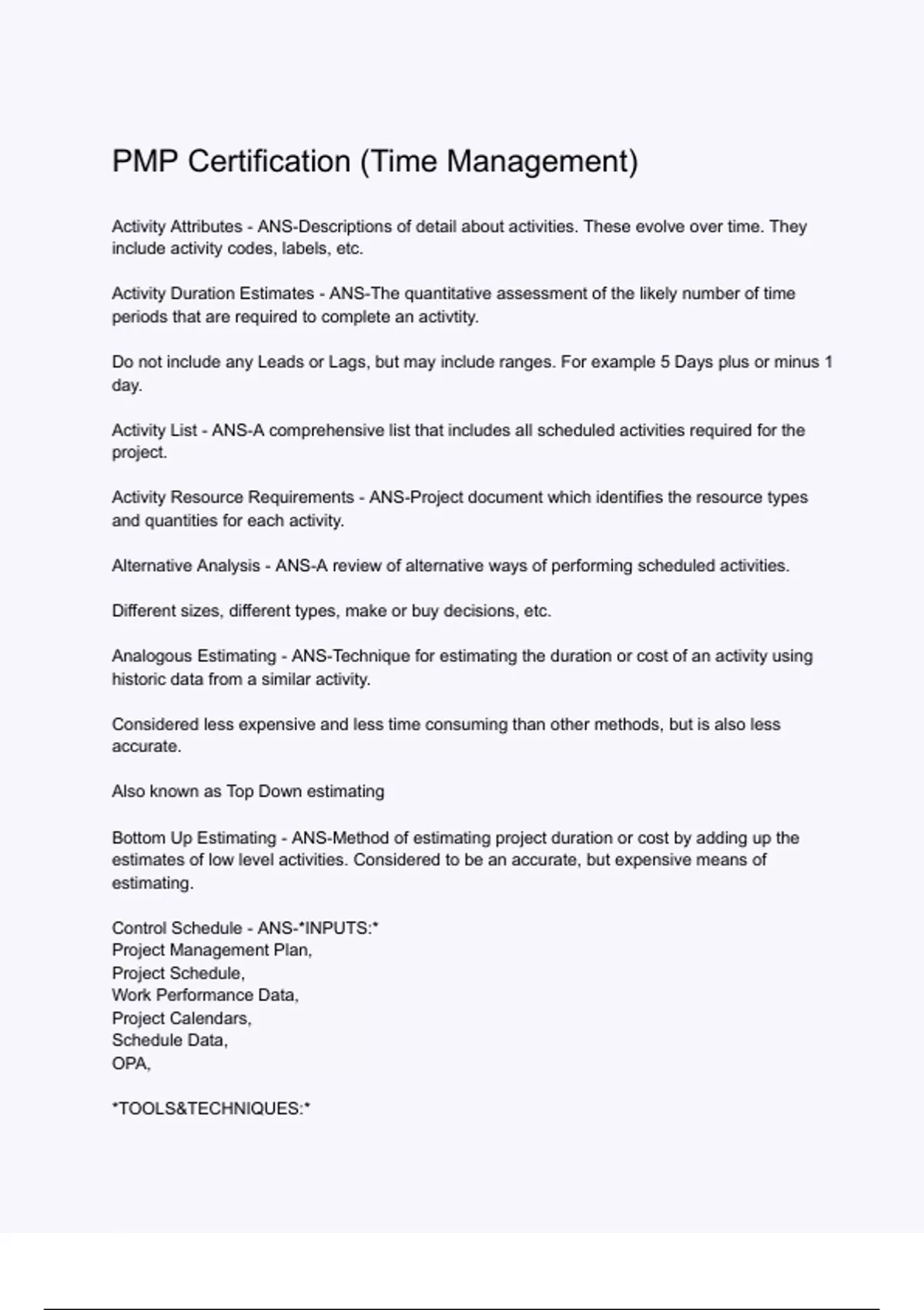 PMP Certification (Time Management) Exam elaborations questions and answers!