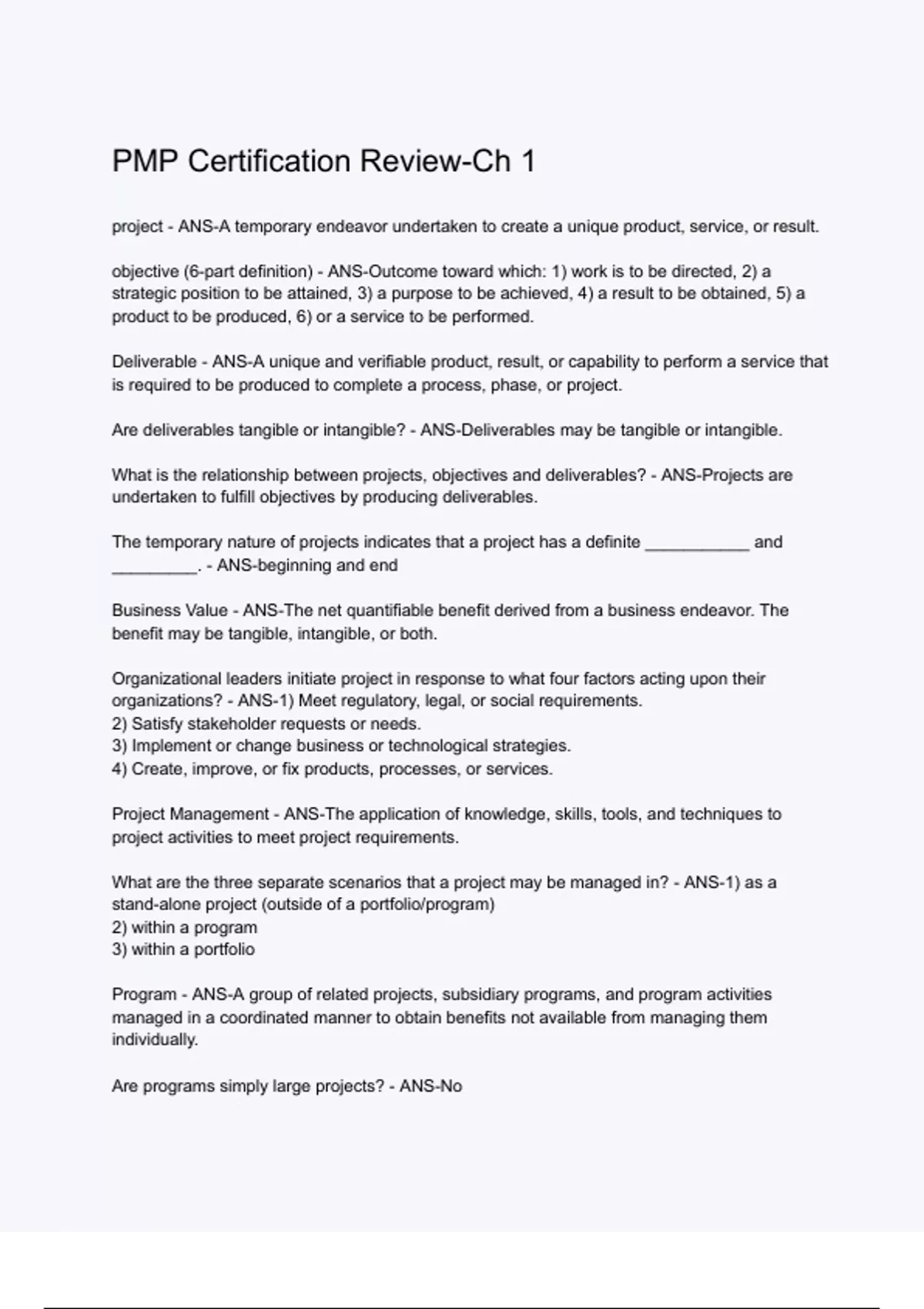 PMP Certification Review-Ch 1 Exam elaborations questions and answers!