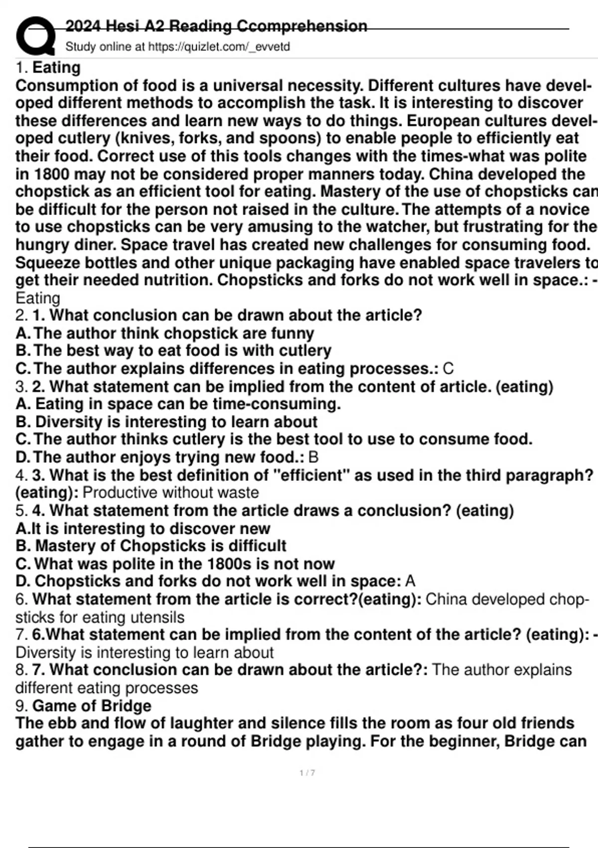 HESI A2 Reading Comprehension (2) Exam (Latest 2024 Update) Questions and Verified Answers| 100% correct| Grade A
