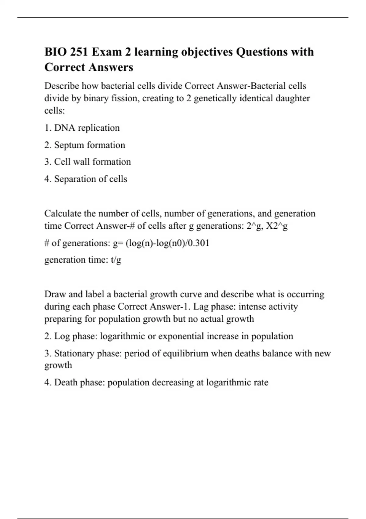 BIO 251 Exam 2 learning objectives Questions with Correct Answers.