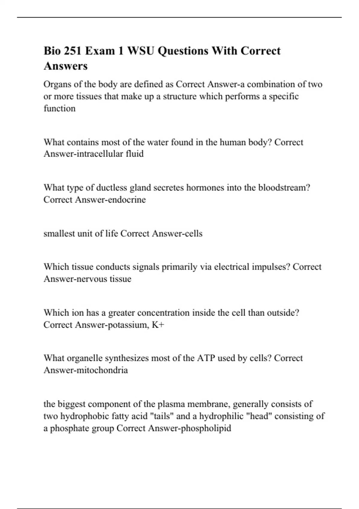 Bio 251 Exam 1 WSU Questions With Correct Answers