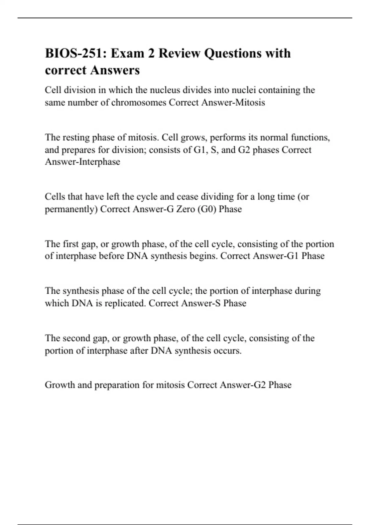 BIOS-251: Exam 2 Review Questions with correct Answers