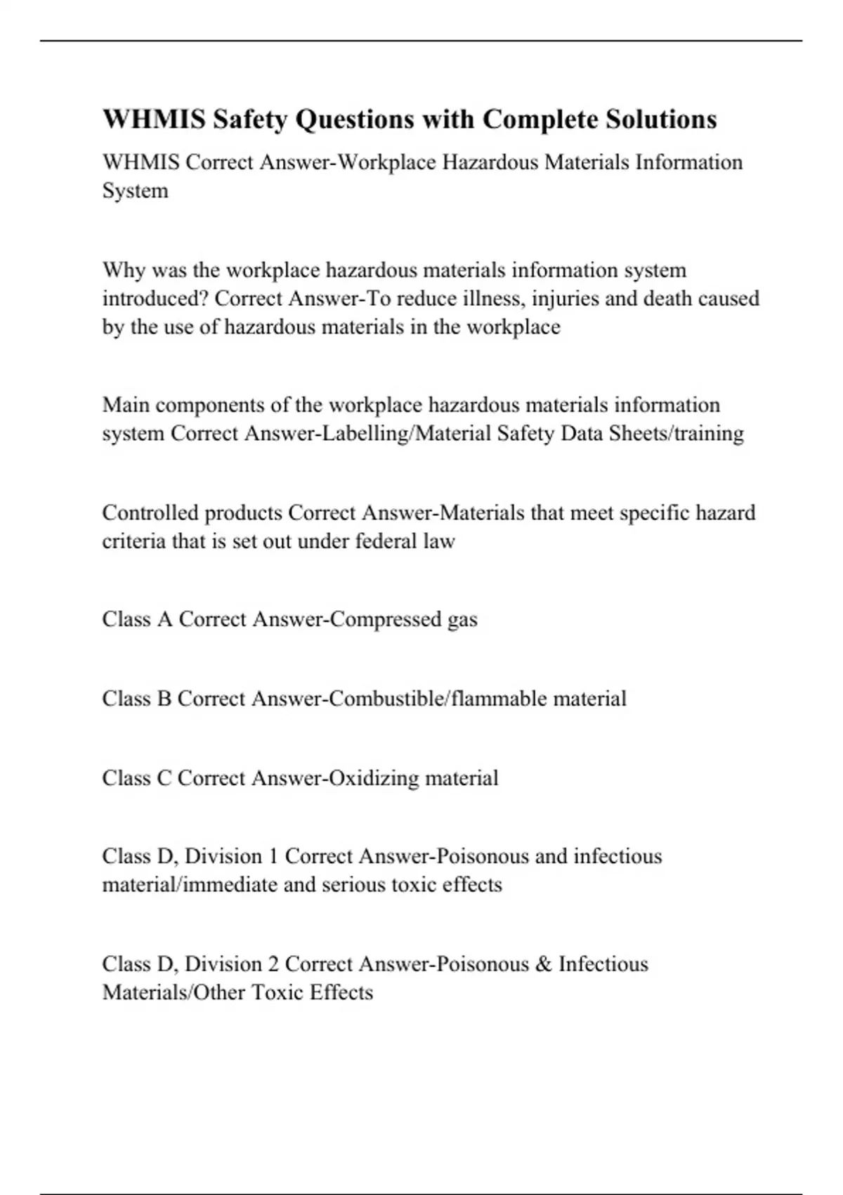 WHMIS Safety Questions with Complete Solutions.docx