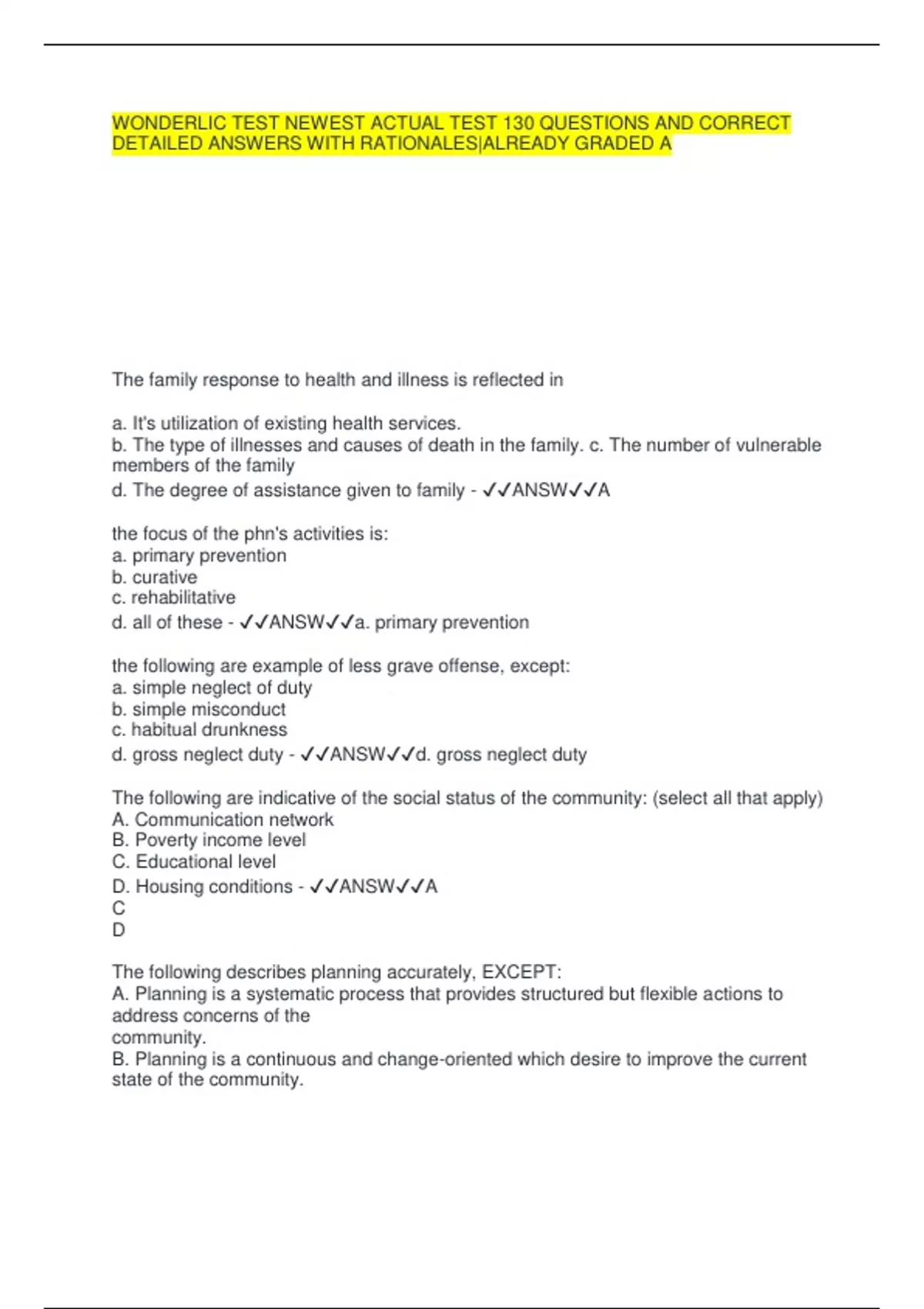 WONDERLIC TEST NEWEST ACTUAL TEST 130 QUESTIONS AND CORRECT DETAILED ANSWERS WITH RATIONALES|ALREADY GRADED A