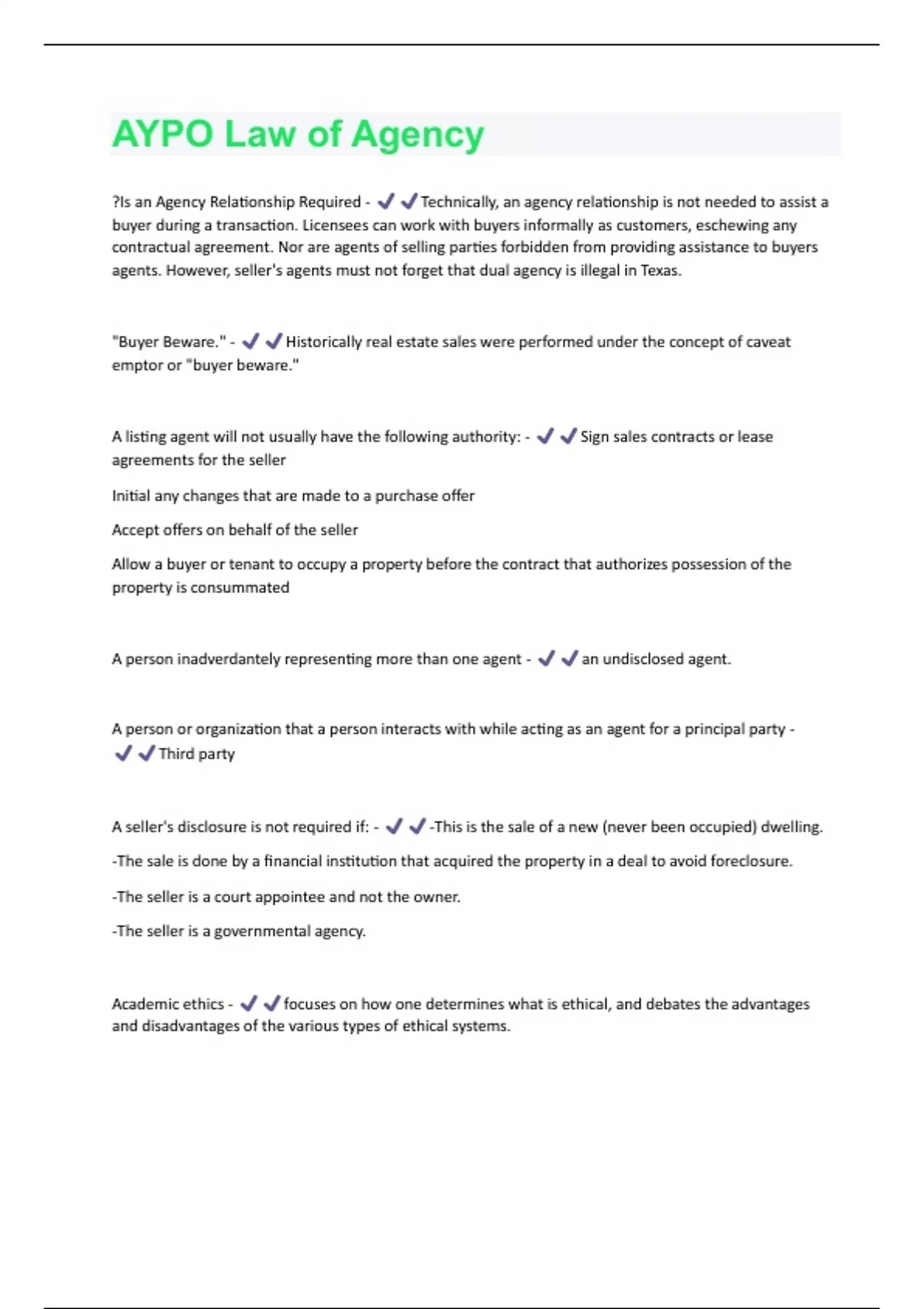 AYPO Law of Agency (Questions & Answers) Rated 100% Correct!!