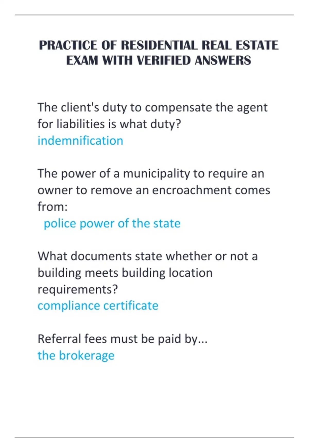 PRACTICE OF RESIDENTIAL REAL ESTATE EXAM WITH VERIFIED ANSWERS