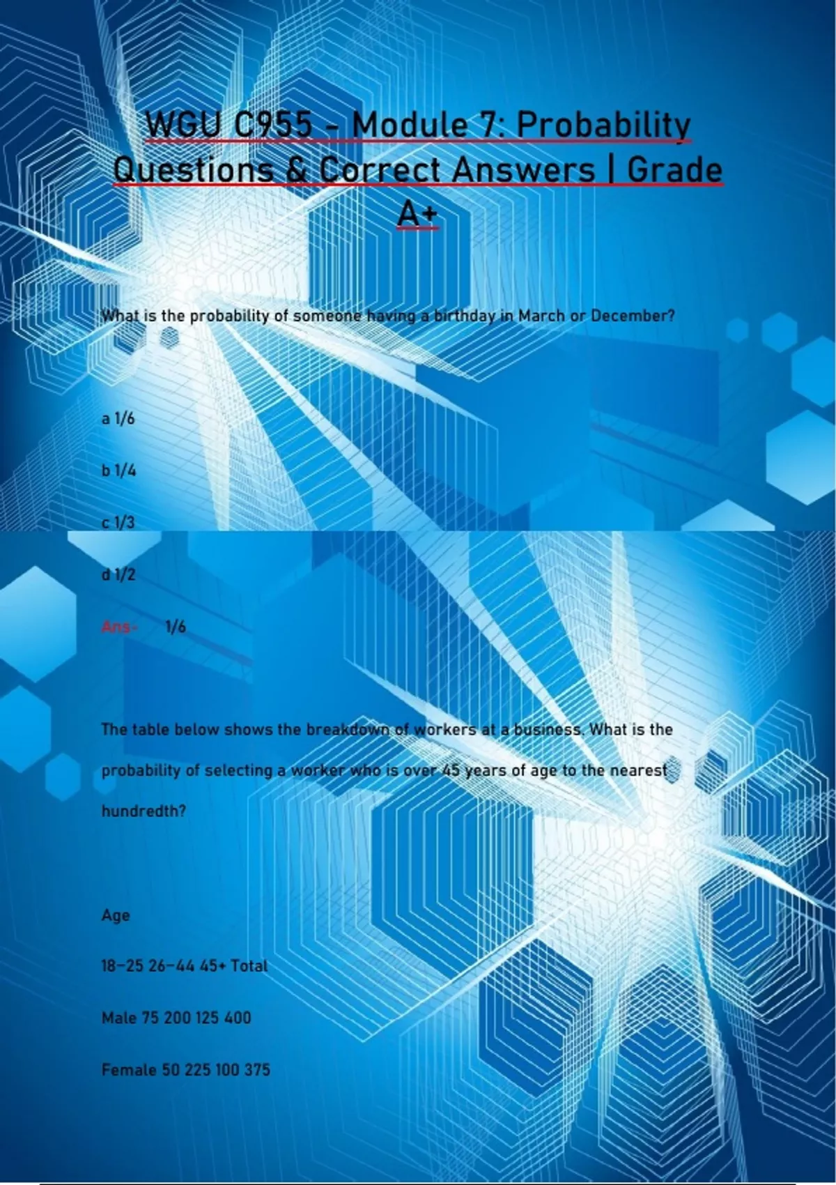 WGU C955 - Module 7: Probability Questions & Correct Answers | Grade A+