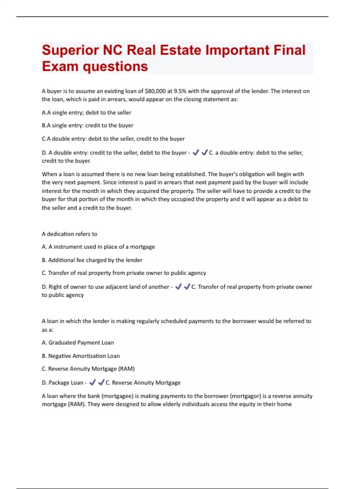 Superior NC Real Estate Important Final Exam Questions With 100% Correct Answers.