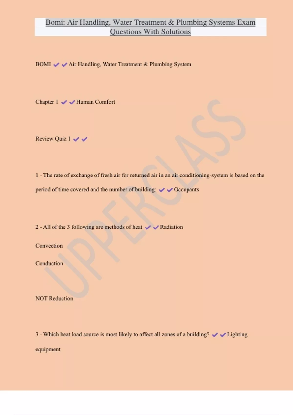 Bomi: Air Handling, Water Treatment & Plumbing Systems Exam Questions With Solutions