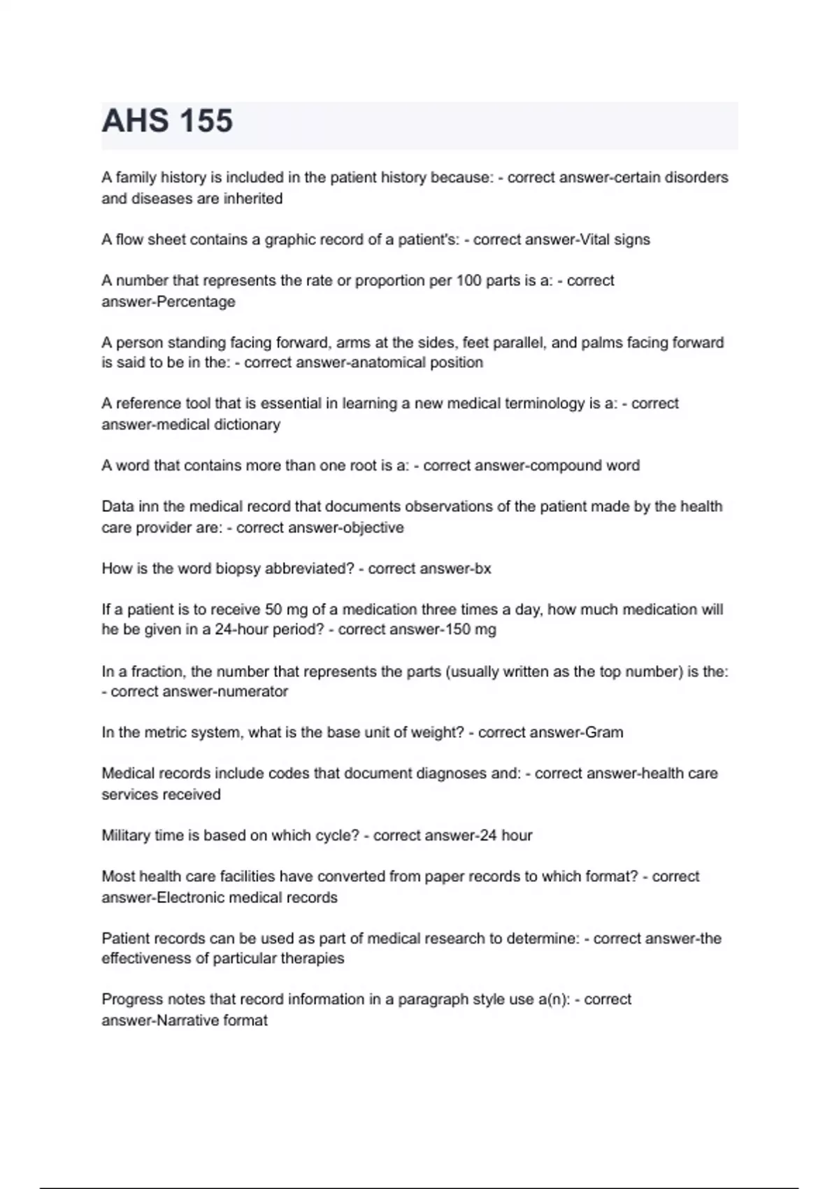 AHS 155 questions and answers.