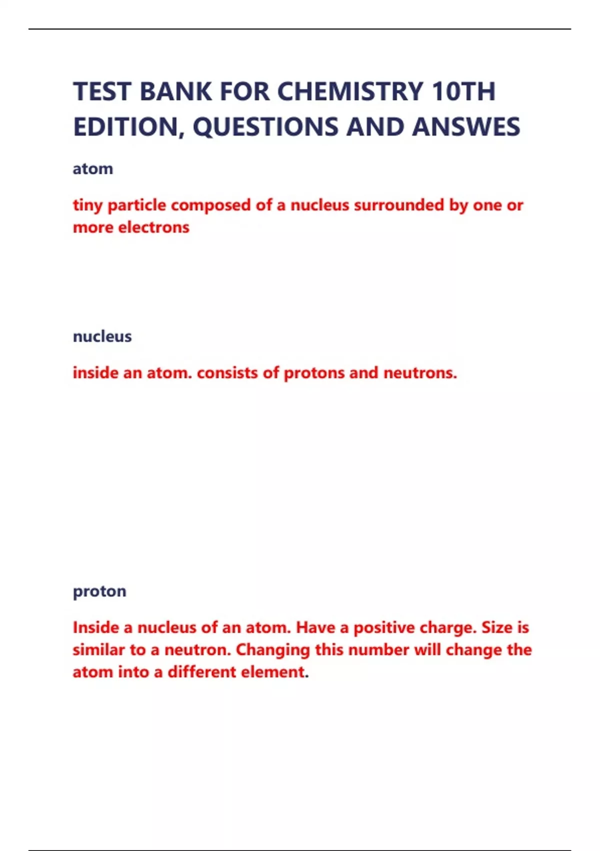 TEST BANK FOR CHEMISTRY 10TH EDITION, QUESTIONS AND ANSWES
