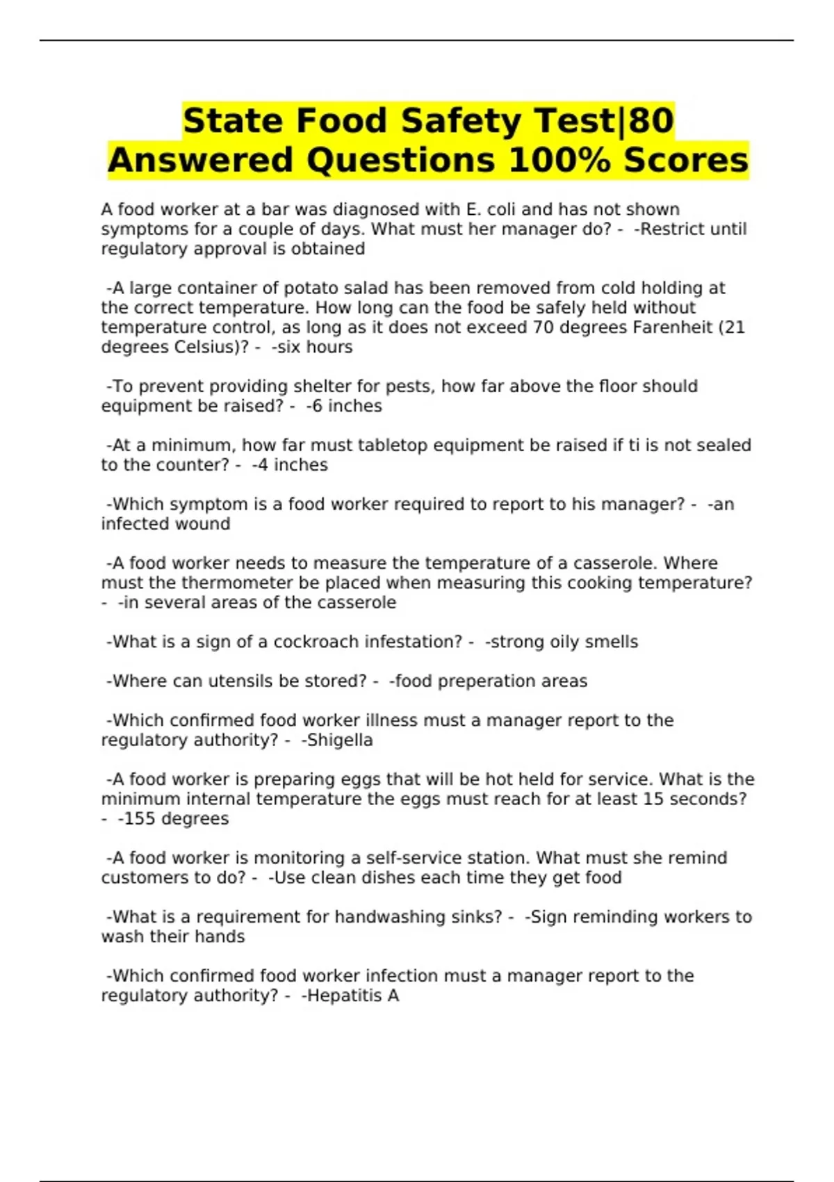 FOOD SAFETY/FOOD HANDLERS EXAMS