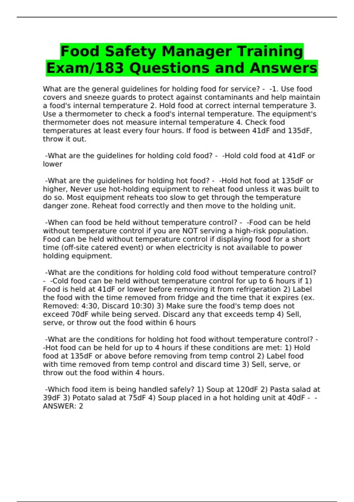 FOOD SAFETY/FOOD HANDLERS EXAMS