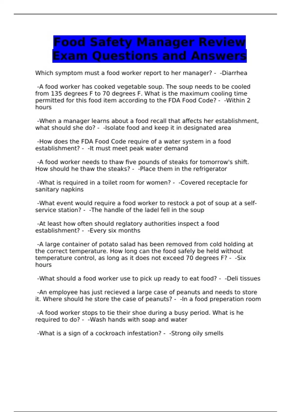 FOOD SAFETY/FOOD HANDLERS EXAMS