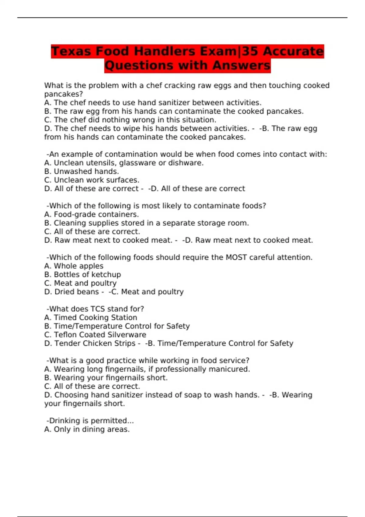 Texas Food Handlers Exam|35 Accurate Questions with Answers