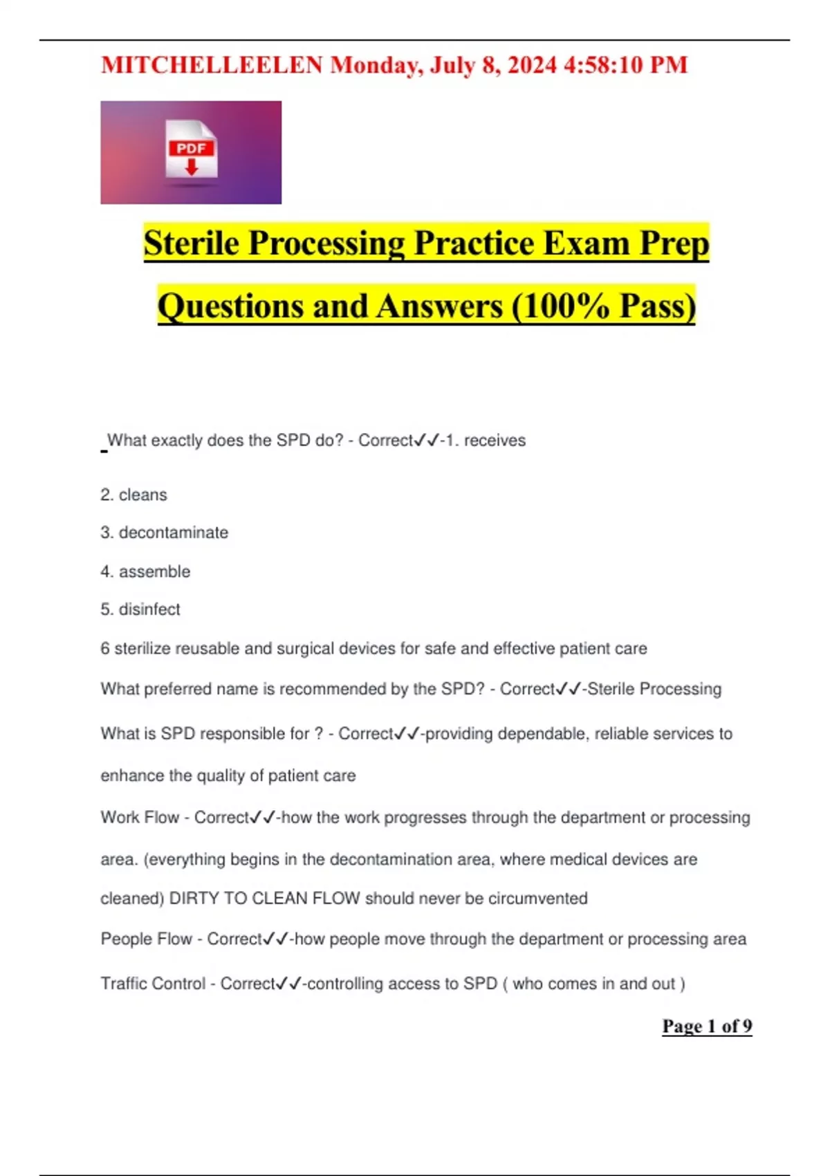 Sterile Processing Practice Exam Prep Questions and Answers (100% Pass)